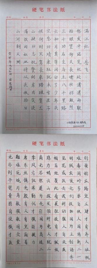 经过激烈的比赛,评委们从笔画规范、卷面整洁度、间架结构、整体感官等方面严格筛选,最终评出了一等奖、二等奖、三等奖,获奖名单如下: