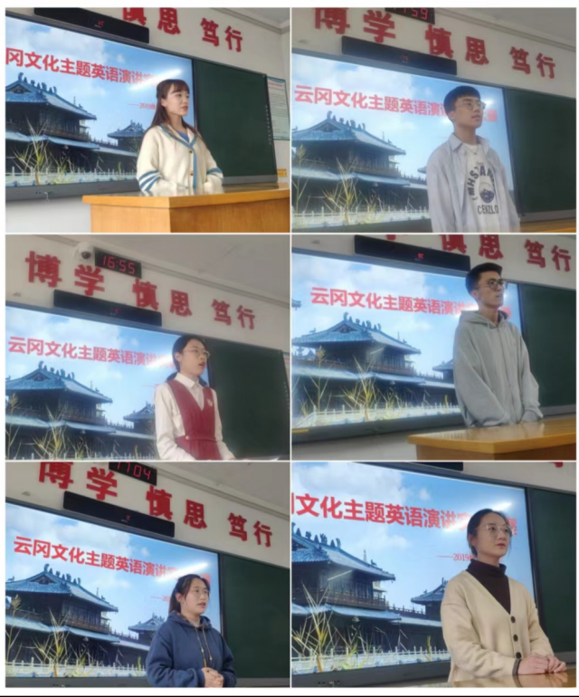 按照翻译专业人才培养方案,为强化翻译专业学生英语演讲能力,用英语来译介云冈文化,讲好大同故事,进一步激发学生疫情封控下的英语演讲热情,翻译专业教研室于2022年4月25日至5月5日组织2019级翻译专业学生进行了云冈文化英语演讲实训大赛。本次活动经学院审批,共五位专业老师参与了本次演讲实训活动。